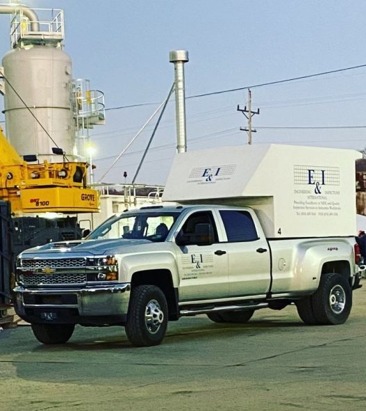 The fleet of X-ray rigs utilized by Engineering & Inspections International are standard Chevrolet 1-ton dually 4 x 4 diesels with full 8’ beds and darkrooms. All trucks are serviced on a regular basis, maintaining their reliability. Our rigs seldom have a mechanical breakdown, and if they do, we have spare rigs ready to go. We supply and stock each rig for everything from pipeline, to refinery, to fab shop styles of work.